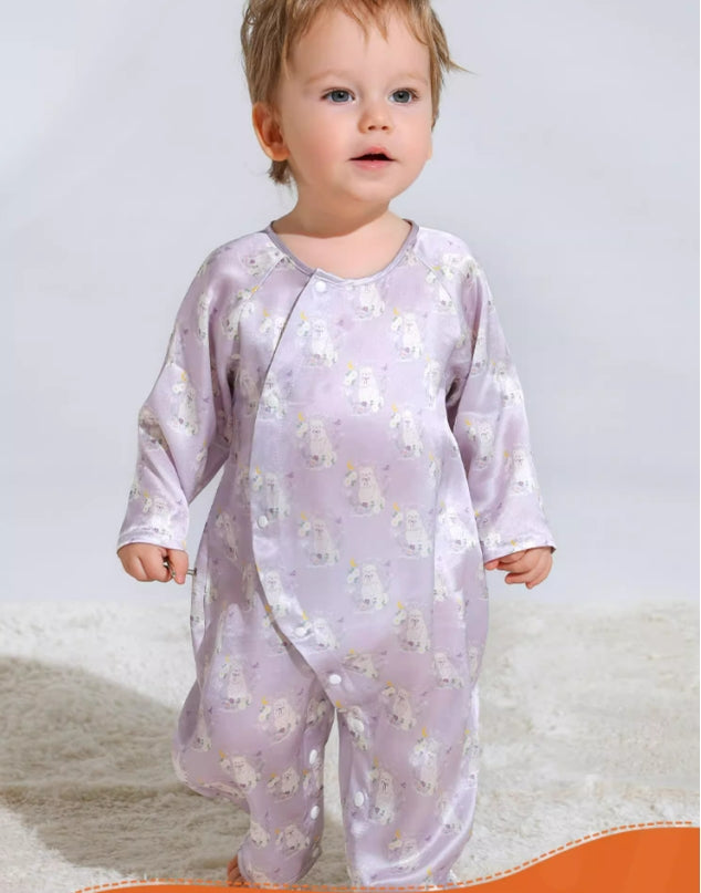 Give your newborn the ultimate in comfort and style with our Baby Silk Crawling Clothes, crafted from 100% Mulberry Silk. Perfect for spring and summer, these one-piece outfits are designed to keep your baby cozy and looking adorable.